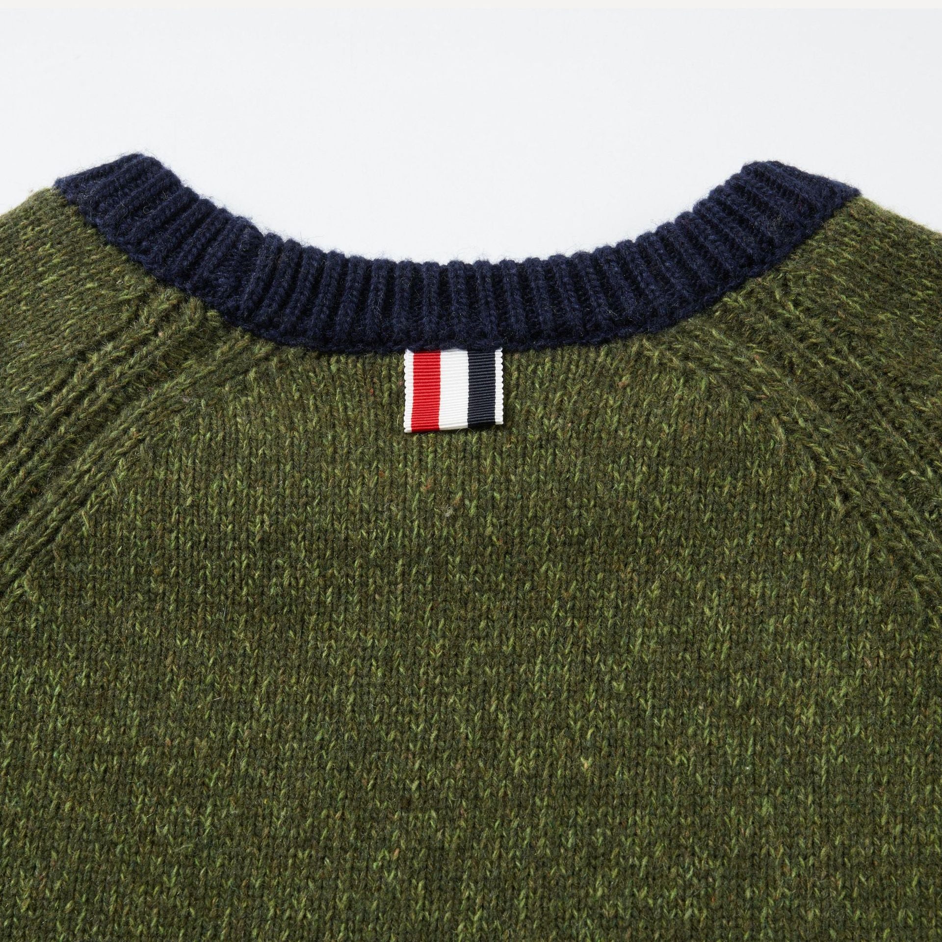 Signature striped grosgrain loop at back of neck